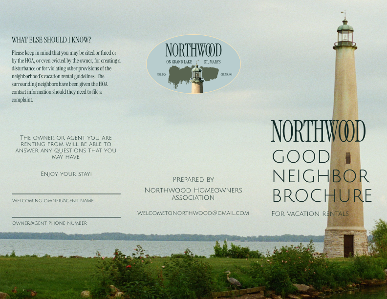 Short‑term vacation rentals are an important part of the Northwood community, and the Homeowners Association is committed to ensuring that these rentals operate in a way that preserves the peaceful, neighbor‑friendly character of our lakeside neighborhood. Northwood is known for its tree‑lined streets, wooded setting, and quiet atmosphere, and we rely on all rental owners to help maintain these qualities for both visitors and year‑round residents.